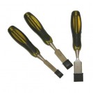 There are several different types and sizes of chisels one should carry in their woodworking shop and each is designed for a specific job. You could consider purchasing a 4 piece set which includes ¼-, ½-, ¾- and a 1 inch beveled bench chisel with blade lengths from 4 to 6 inches. Plastic handles are best because they can stand up to being hit by a mallet and are comfortable to hold for long periods of time. If you only have the budget for one, purchase a ¾ inch chisel and be sure to purchase a reputable brand because quality counts, it will hold up to repeated sharpening longer.